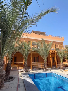 Mocht er extra ruimte nodig zijn, dan reserveren we ook het tegenovergelegen Sheikh Ali, een viersterrenhotel gerund door Karim (een oud-collega van Elly en groot fan van zangvakanties). Hij stelt zijn prachtige oefenruimte in de tuin gratis beschikbaar: een sfeervolle rieten yogashala. Ook hier zijn de kamers ruim, verzorgd en van alle gemakken voorzien.